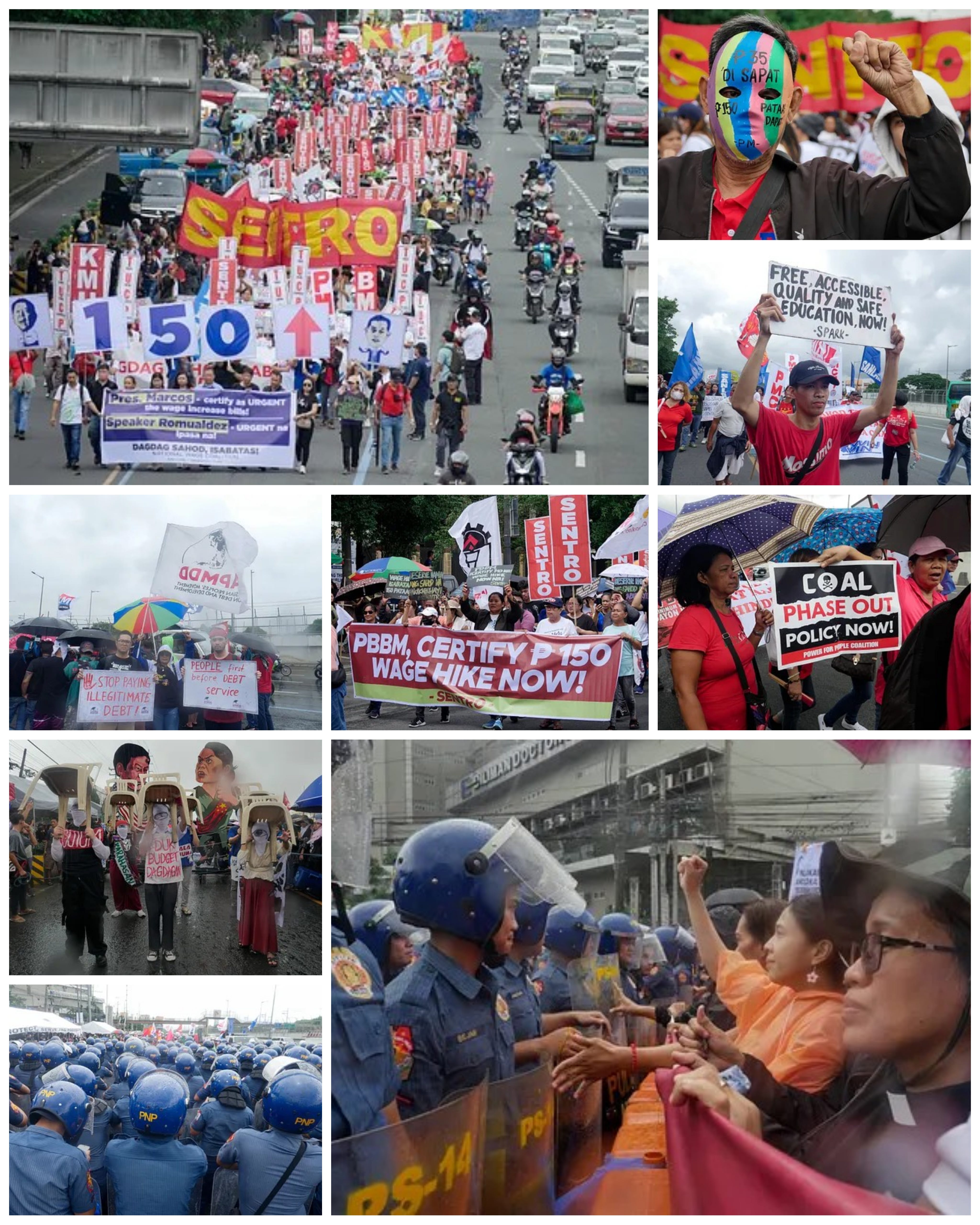 Protesters marched with outcries on President Marcos Jr.’s third State of the Nation Address. People demanded action on climate justice. They also called for an increase of ₱150 to the minimum wage and more.